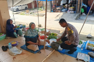 Bhabinkamtibmas Polsek Kluet Tengah Sambangi Pedagang di Pasar Inpres, Sampaikan Pesan Kamtibmas