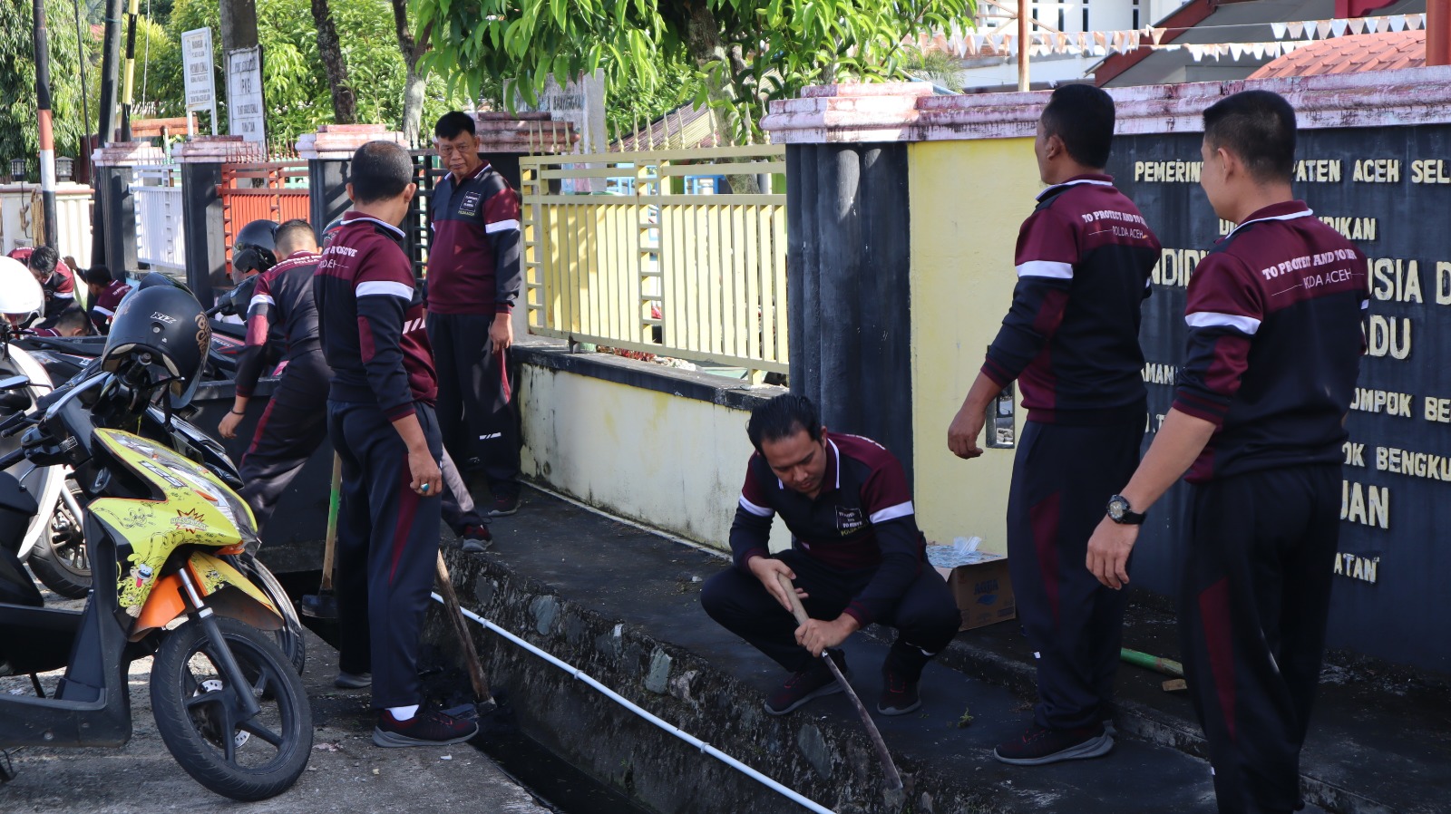 Jaga Kebersihan Mako, Personil Polres Aceh Selatan Laksanakan Kurve