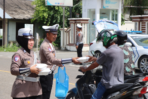 Kegiatan yang dipimpin langsung oleh KBO Sat Lantas Ipda Marties Fannie tersebut berlangsung penuh kehangatan. Para pengendara yang menerima nasi kotak tampak antusias dan mengapresiasi perhatian Polri terhadap masyarakat. Selain itu, personel Sat Lantas juga menyampaikan ucapan hati-hati di jalan serta imbauan pentingnya tertib berlalu lintas demi keselamatan bersama.
