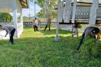 Sinergitas Polri dan Masyarakat, Polsek Kluet Timur Gelar Jumat Bersih di Makam Pahlawan Rajo Lelo