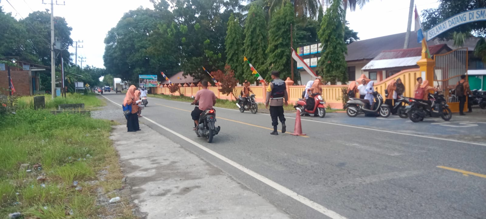 Tribratanewsacehselatan – Guna menciptakan rasa aman bagi warga dalam beraktifitas di pagi hari, khususnya para siswa yang akan menuju sekolah, personel Polsek Meukek melaksanakan kegiatan Strong Point di SMAN 1 Meukek Kabupaten Aceh Selatan, Jum’at (11 Agustus 2023).