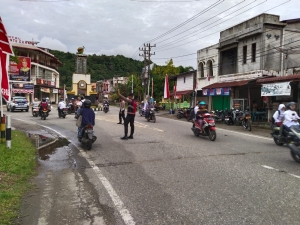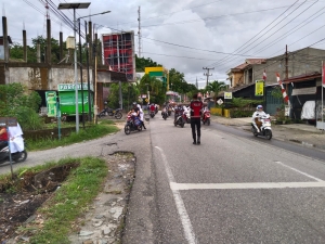 Pastikan Ketertiban Lalulintas, Personel Sat Samapta Polres Aceh Selatan Laksanakan Kegiatan Strong Point Pagi