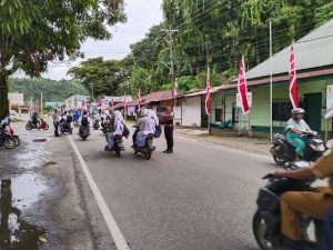 Tribratanewsacehselatan – Personel Sat Samapta Polres Aceh Selatan Polda Aceh melaksanakan kegiatan rutin Strong Point pagi, yang bertujuan untuk menjaga keamanan dan ketertiban di berbagai titik rawan di wilayah hukum Polres Aceh Selatan. Kegiatan ini dilakukan untuk memastikan kelancaran aktivitas masyarakat di pagi hari, terutama saat arus lalu lintas sedang tinggi dan masyarakat memulai aktivitas sehari-hari, Senin, 19 Agustus 2024.
