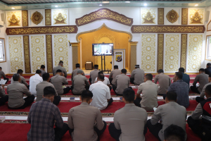 Tribratanewsacehselatan – Dalam rangka meningkatkan keimanan dan ketakwaan kepada Allah SWT, personel Polres Aceh Selatan Polda Aceh mengikuti kegiatan Pembinaan Rohani dan Mental (Binrohtal) yang digelar secara daring oleh Biro SDM Polda Aceh. Kegiatan berlangsung di Masjid Babuttaqwa Polres Aceh Selatan dan diikuti oleh para Pejabat Utama, personel Polri, serta ASN Polres Aceh Selatan, Kamis, 6 November 2025.