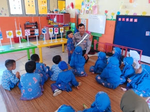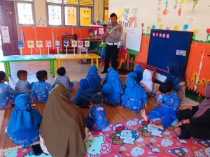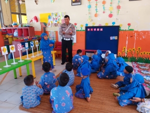 Tribratanewsacehselatan – Satuan Lalu Lintas (Satlantas) Polres Aceh Selatan Polda Aceh melaksanakan program Polisi Sahabat Anak di TK Pembina Kecamatan Tapaktuan. Kegiatan ini bertujuan mengenalkan rambu-rambu lalu lintas kepada anak-anak usia dini sekaligus menanamkan kesadaran tentang pentingnya tata tertib berlalu lintas, Kamis, 21 November 2024.