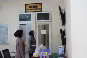 Tribratanewsacehselatan – Polres Aceh Selatan Polda Aceh menghadirkan wajah baru dalam pelaksanaan pengamanan markas komando (Mako) dan tahanan. Kali ini, personel Polwan Polres Aceh Selatan yang mengambil peran penting menjaga pintu utama Mako serta ruang tahanan dan barang bukti (Tahti). Pengamanan ini dilakukan sebagai bentuk pengganti sementara personel piket yang sedang melaksanakan ibadah sholat Jumat, Jumat, 19 September 2025.